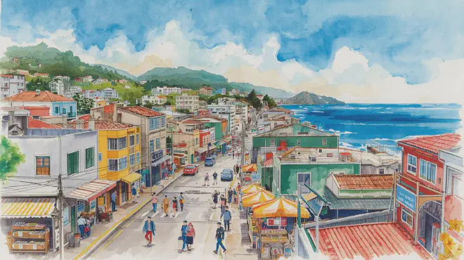 この旅は、実際には存在しない。私が金海空港に降り立つこともなければ、チャガルチ市場で刺身を食べることもなかった。甘川文化村の坂道を登ることも、海雲台の砂浜を歩くことも、すべては想像の中の出来事だ。