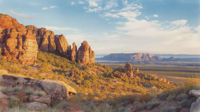ここでは岩の造形がさらに複雑で、まるで巨大な彫刻庭園のようだ。「パンチ・アンド・ジュディ」と名付けられた二つの岩は、人形劇の登場人物のように向かい合っている。「トーテム・ポール」は細長く天を突く。「ビッグ・バランスド・ロック」は、今にも転がり落ちそうなほど不安定に見えるが、何千年もそこに立ち続けている。