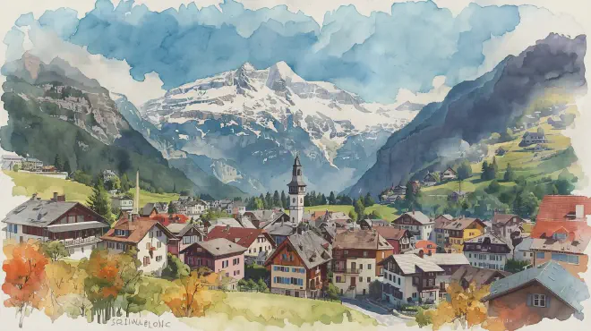 村の中心部には木造のシャレーが立ち並び、バルコニーには赤いゼラニウムの花が飾られている。ドイツ語圏に属するこの地域では、スイスドイツ語が日常的に話されているが、観光地ゆえに英語も広く通じる。教会の鐘の音が谷間に響き渡り、牛たちの首につけられたカウベルの音が牧草地から聞こえてくる。そんな牧歌的な風景の背後には、アイガー、メンヒ、ユングフラウという3,000メートル級の名峰が連なっている。