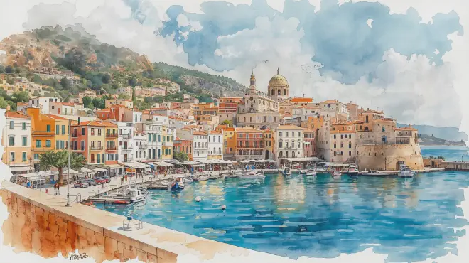 街の中心部には16世紀に築かれたヴェネツィア要塞が威風堂々と立ち、その石壁は数百年の時を刻んできた。港には漁船と観光船が並び、エーゲ海の青い水面に白い船体が映える。街角からはオリーブオイルとハーブの香りが漂い、タヴェルナからは陽気な笑い声が聞こえてくる。