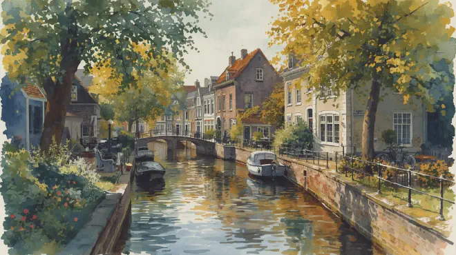 ライン川の支流であるオウデ・ライン川が街の中心を静かに流れ、その両岸には17世紀の黄金時代から続く煉瓦造りの建物が並んでいる。1575年に設立されたライデン大学は、オランダ最古の大学として今も多くの学生たちを迎え入れ、街全体に若々しい活気と学術的な雰囲気を与えている。