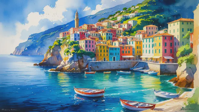この旅は空想の産物でありながら、心の中では確かに体験した出来事として残っている。ポルトフィーノの美しい港、パステルカラーの家々、温かい人々との出会い、そして地中海の青い海。それらすべてが、まるで実際に訪れたかのように鮮明に思い出される。