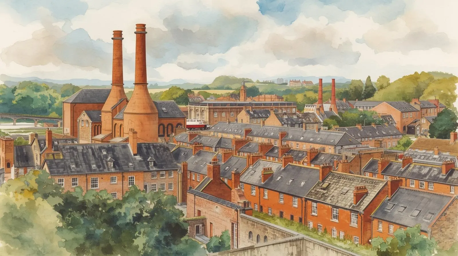 ウェッジウッド、ロイヤルドルトン、スポード、ミントンといった世界的な陶磁器ブランドが生まれたこの地は、産業革命の波に乗りながらも、職人の手仕事が息づく街として独特の文化を育んできた。かつて煉瓦造りの煙突が林立した風景は、今では緑豊かな公園や文化施設へと姿を変えているが、街の至る所に残る窯跡や古い工場建築が、陶の都としての誇り高き歴史を物語っている。