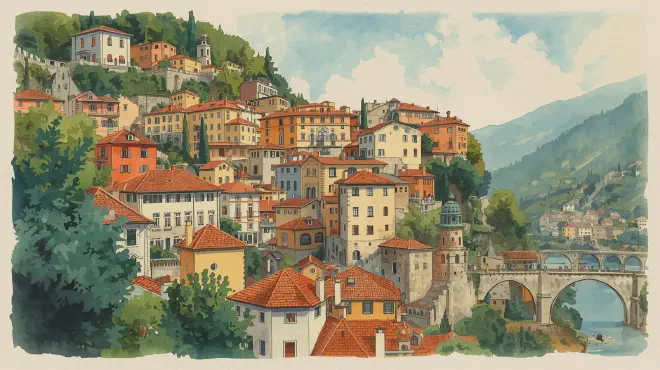 温泉でさっぱりした後は、再び旧市街を散策。夕暮れ時の旧市街は特別に美しい。石造りの建物が夕陽に染まり、バルコニーから垂れ下がるブドウの蔓が風に揺れている。小さな路地を歩いていると、窓から漂ってくる夕食の匂いに、どこか懐かしい気持ちになった。