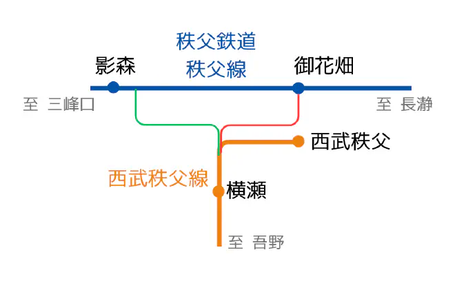 西武秩父駅と御花畑駅は徒歩で乗り換え可能なものの、この2つの路線は、路線上は接続されていません。